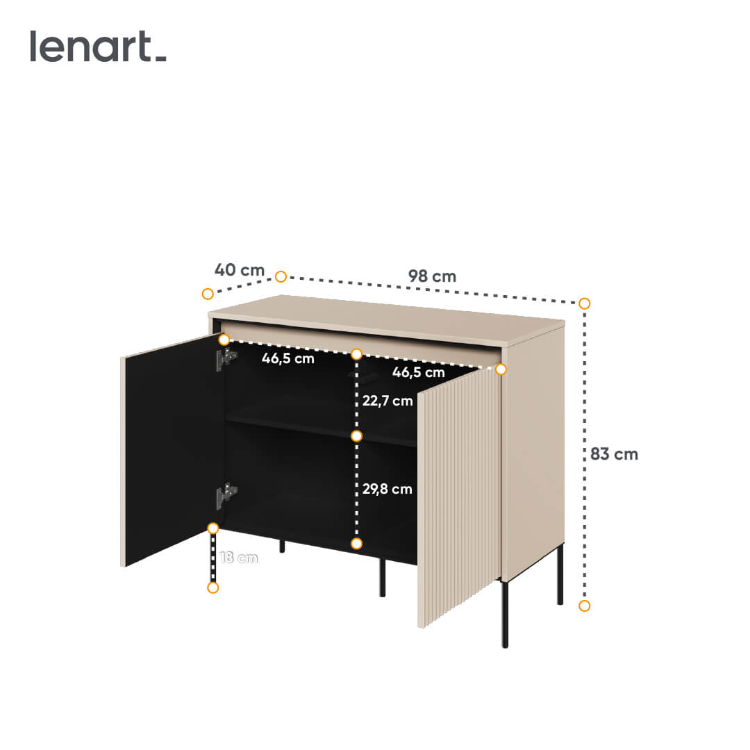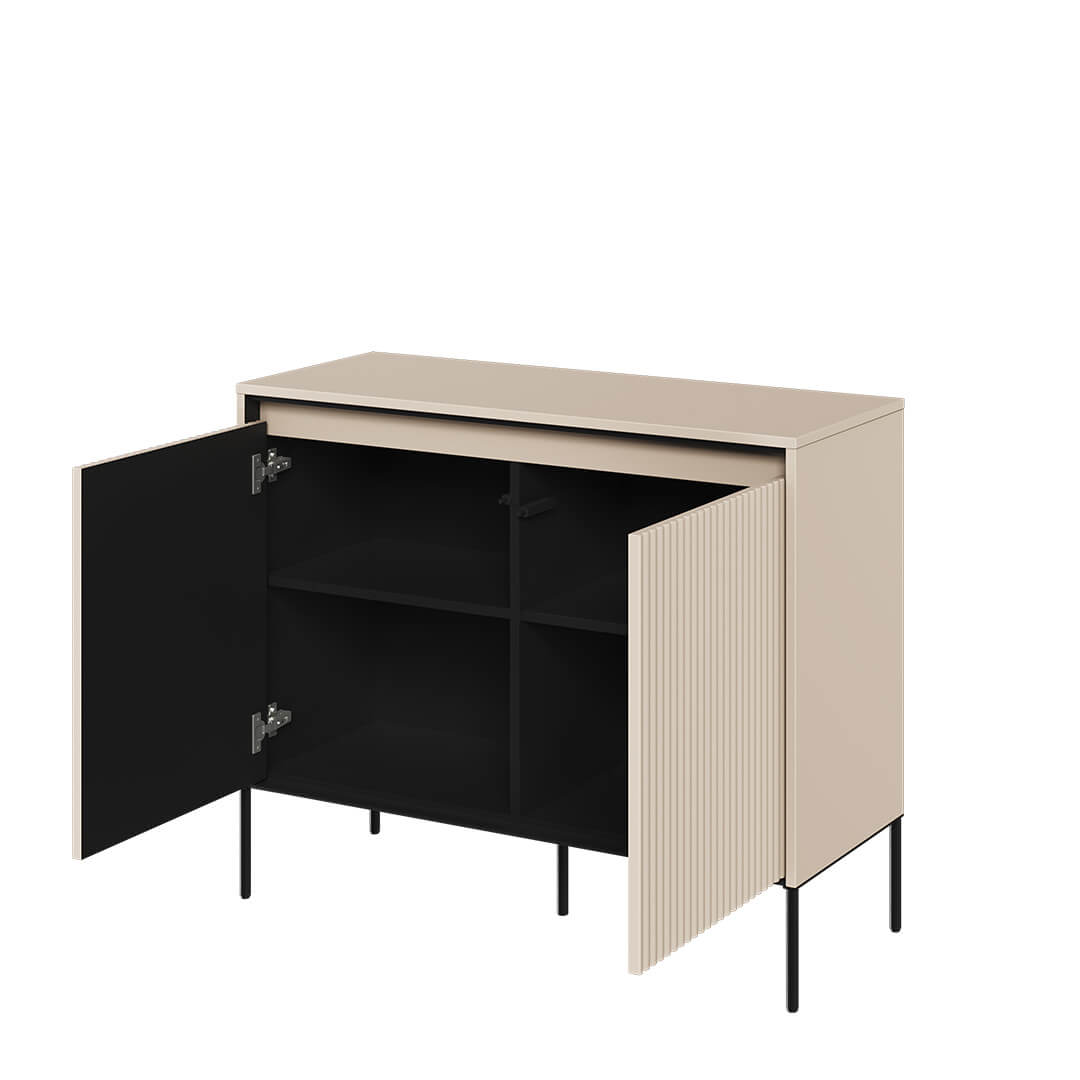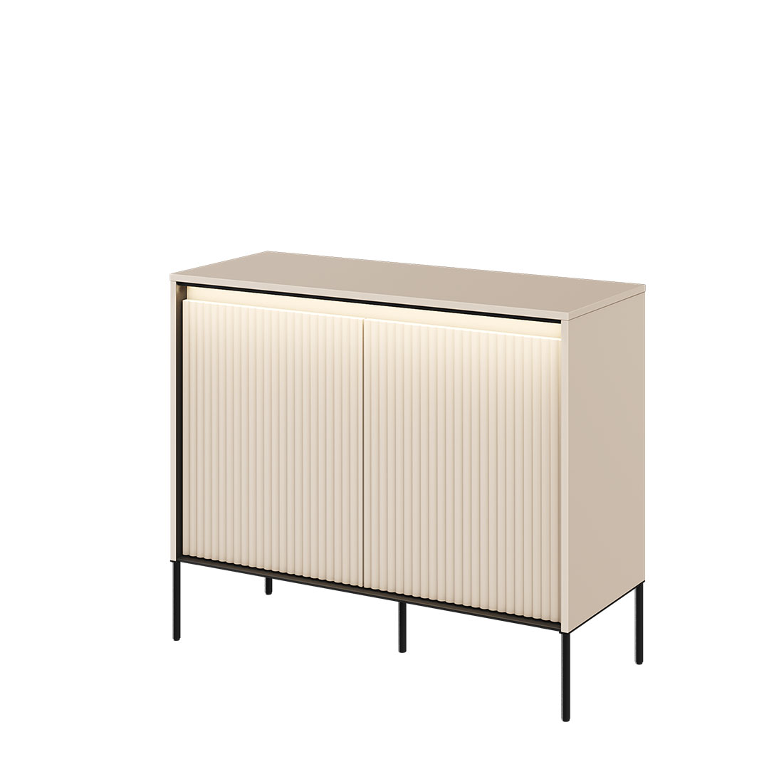 BEŻOWA KOMODA DWUDRZWIOWA Z RYFLOWANYMI FRONTAMI TREND TR-02