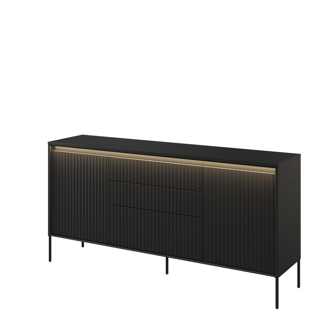 CZARNA KOMODA Z RYFLOWANYMI FRONTAMI TREND TR-01